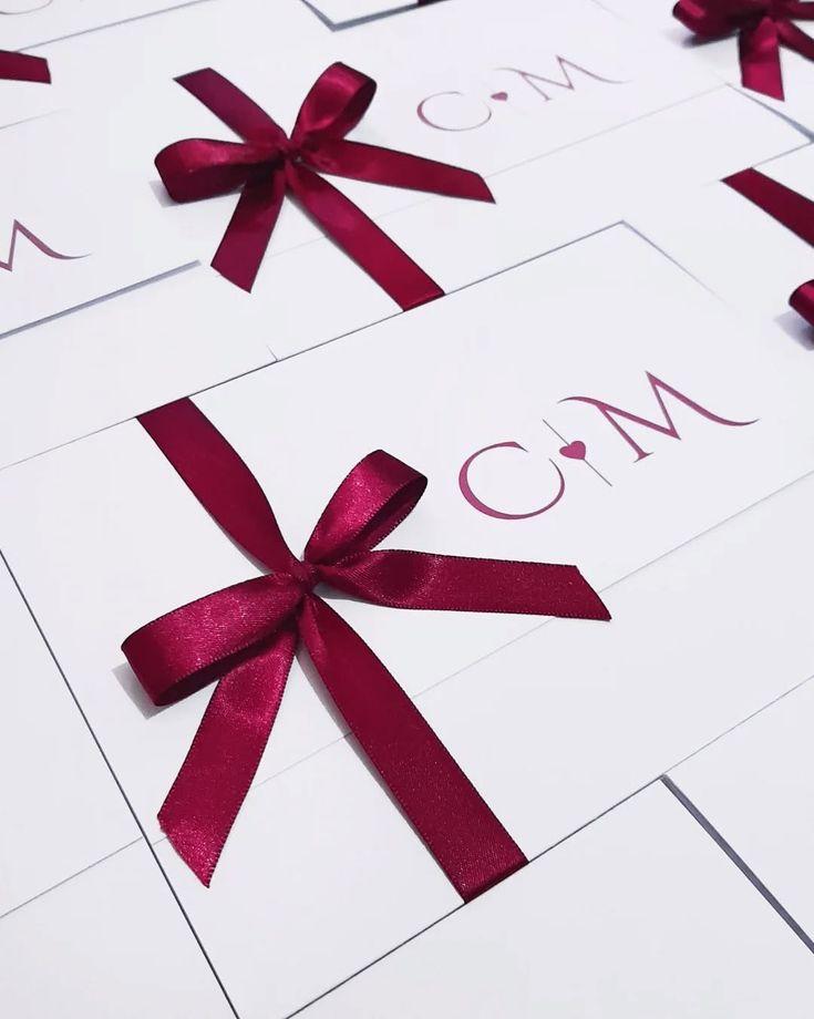 Acabamento: Brilho fosco, fechamento com fita de cetim.