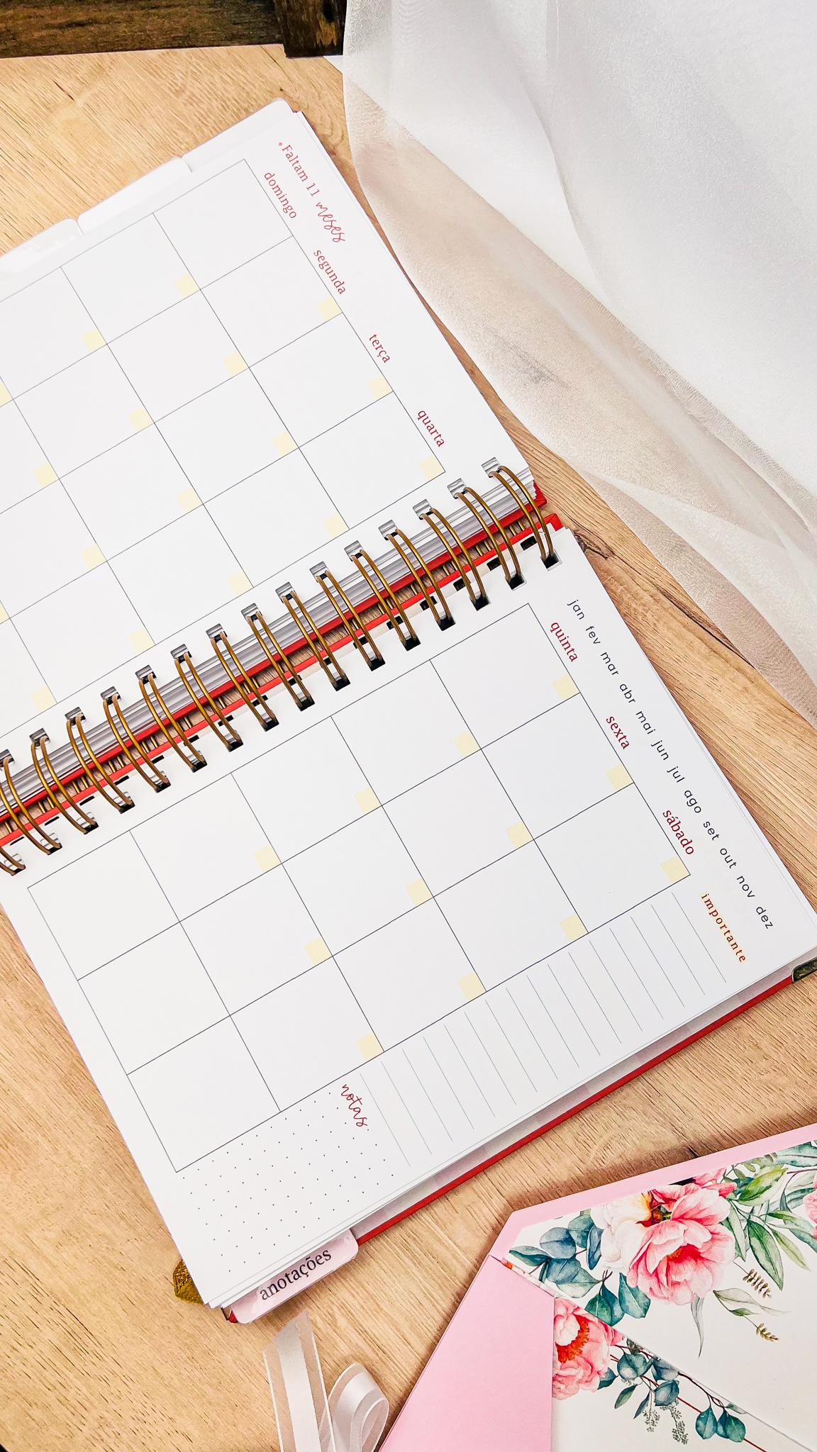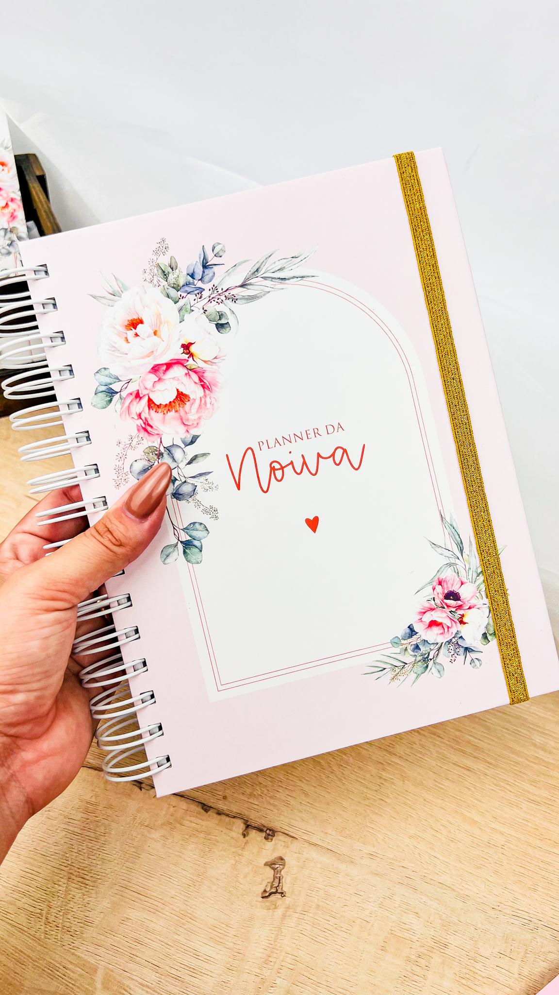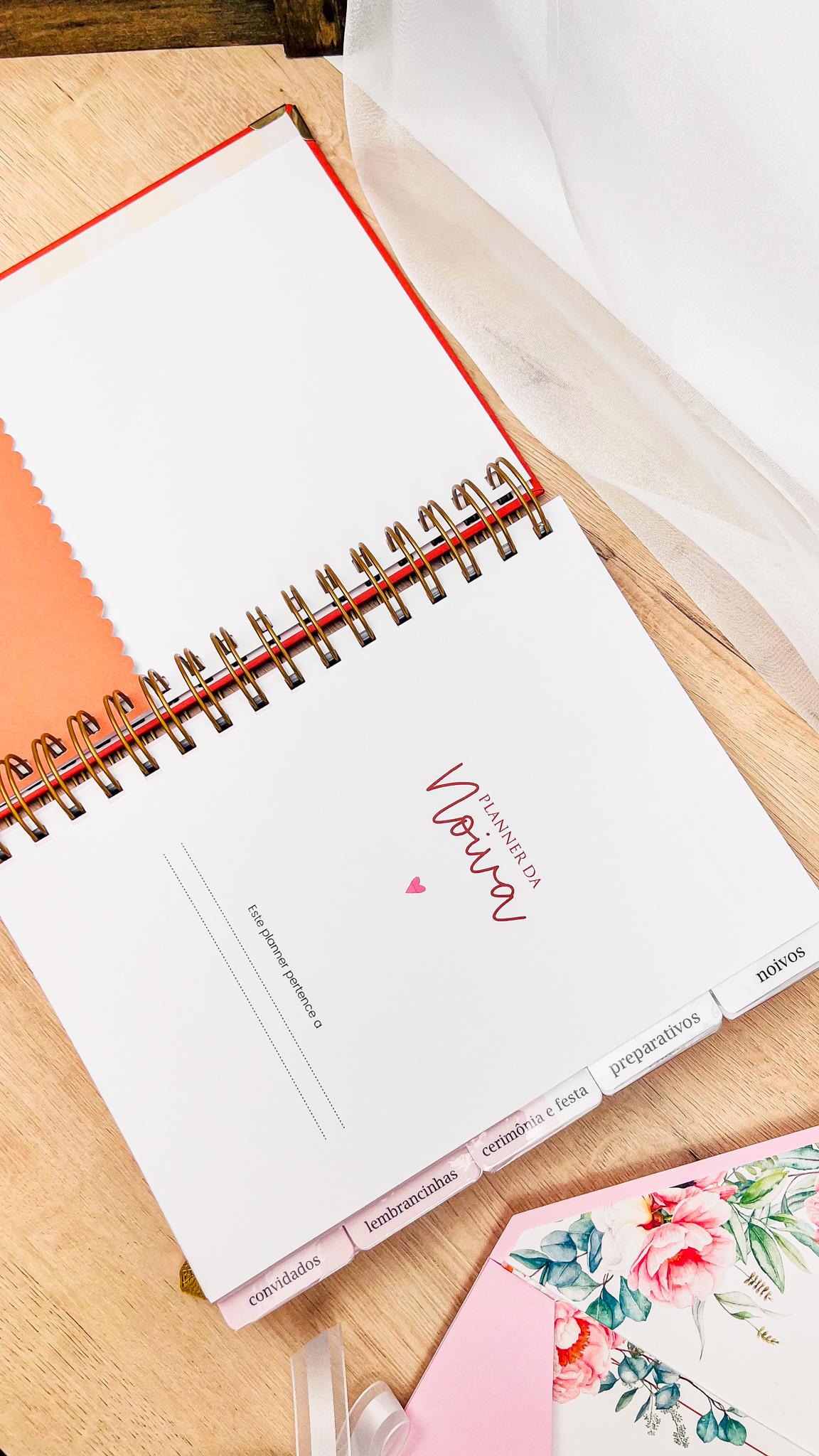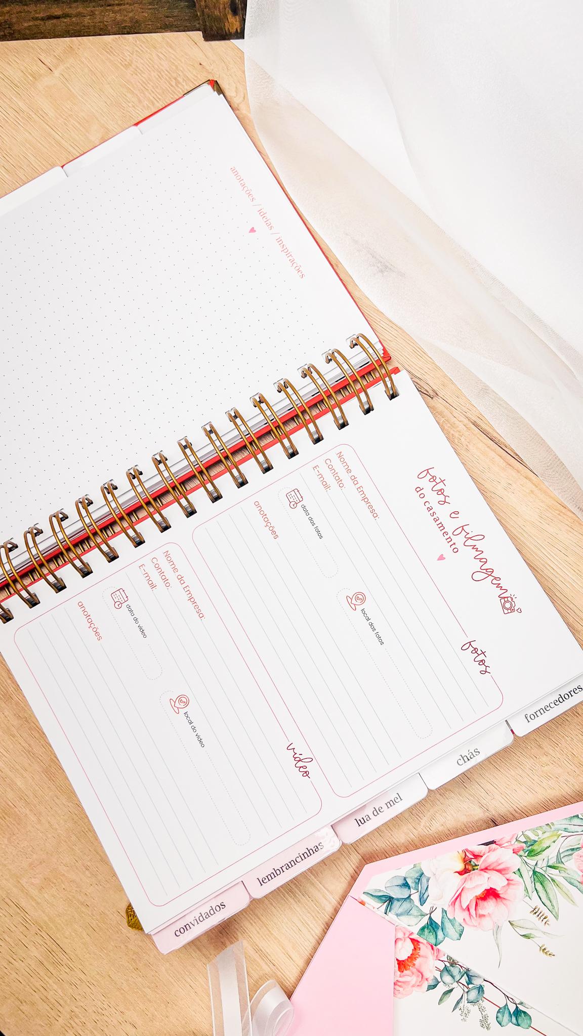 - Espaço para planejamento dos últimos 12 meses que antecedem o casamento, com checklist de atividades