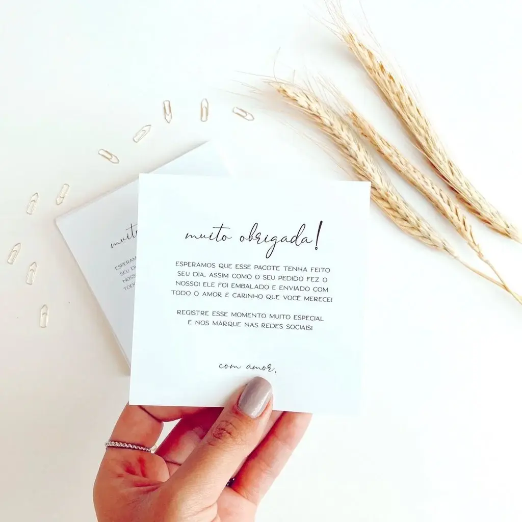Mais do que um mimo, o card de agradecimento é aquele detalhe especial que transmite afeto, cuidado e profissionalismo. Ele transforma a experiência do cliente em algo memorável — mostrando que por trás de cada pedido existe alguém apaixonado pelo que faz. Ideal para ser colocado dentro da caixinha, na sacola ou junto do produto, esse cartãozinho é a forma perfeita de reforçar a identidade da sua marca e deixar sua entrega ainda mais encantadora.